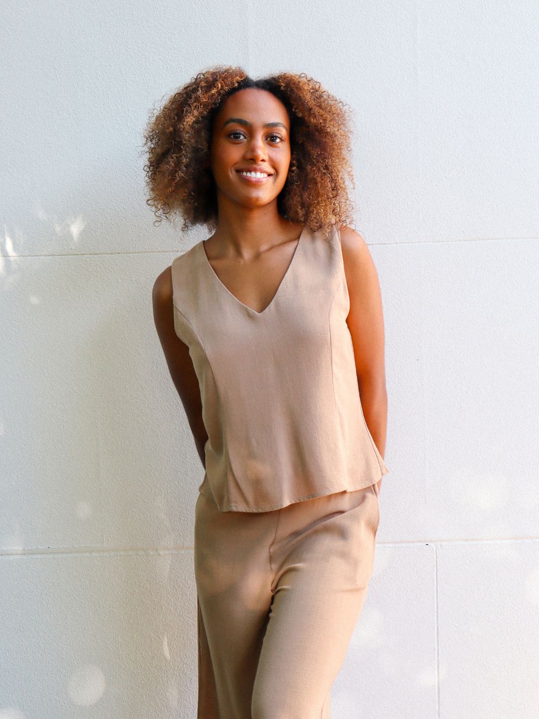 Get ready to fall in love with our LOVE TOP! This classic spring set features a flattering V-neck singlet that effortlessly pairs with our linen styles.