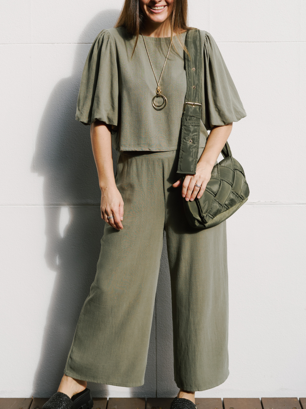 OUR VIRAL BEST SELLING Crisp Culotte is the perfect lightweight pant that will get you through the seasons. They feature a high-rise waist, a wide leg, culotte style pant with an elastic back for added comfort.