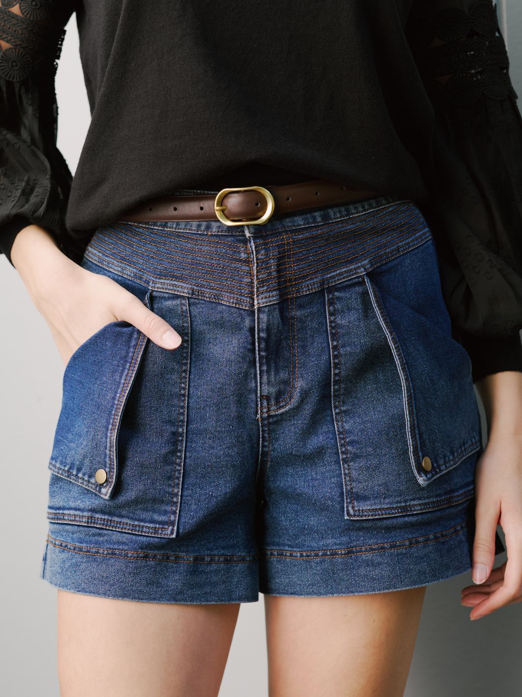 • High waisted, wide leg short