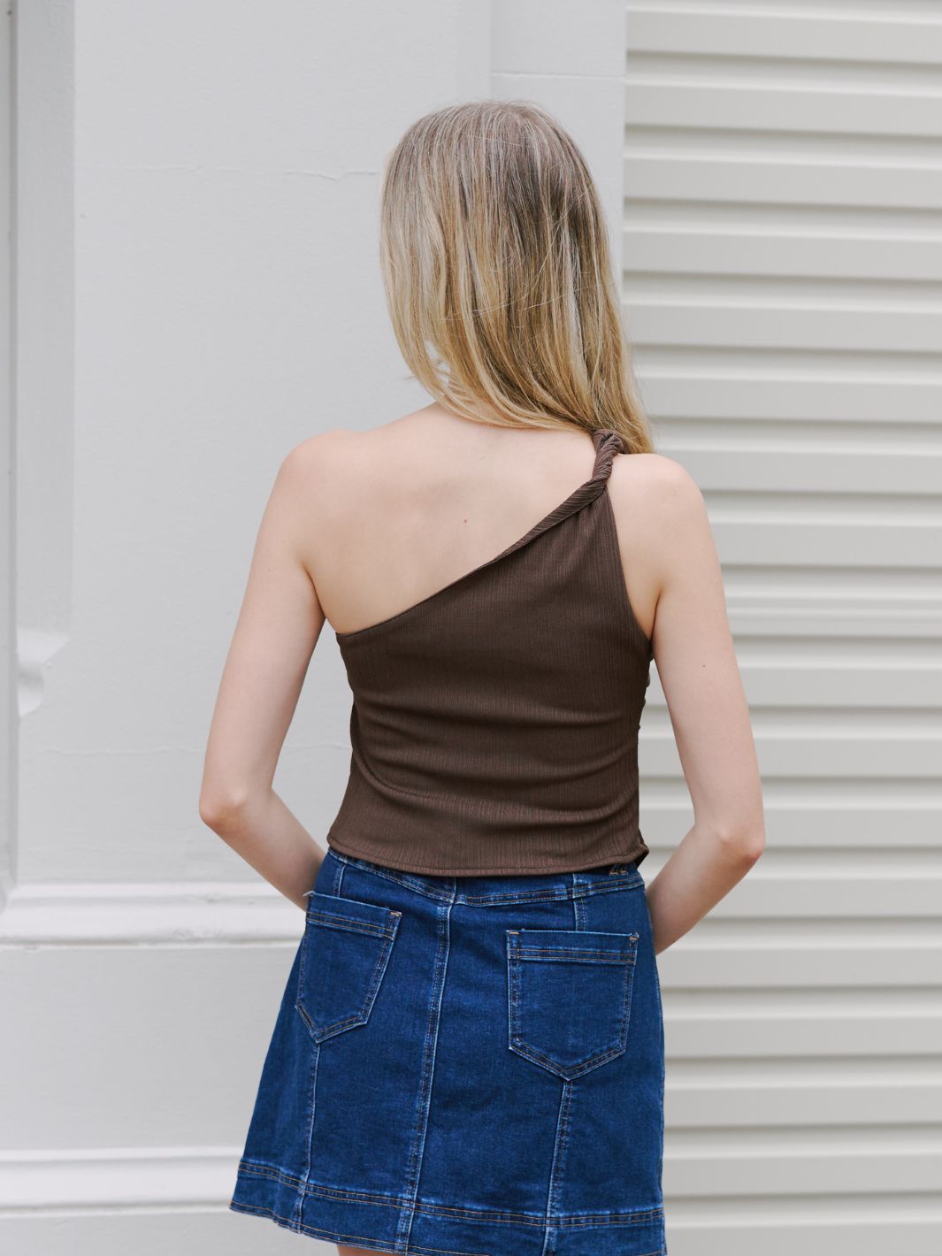 Introducing the WINNIE ANGLE TOP – the perfect blend of style and comfort. Made with a soft ribbed texture and featuring a unique one shoulder cut and angular hem, this top will make you stand out from the crowd.