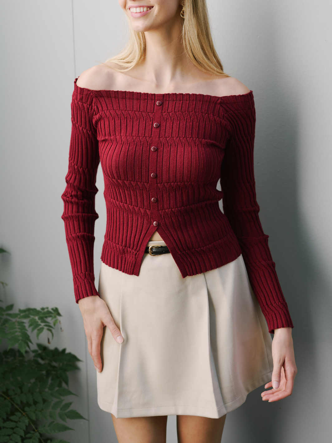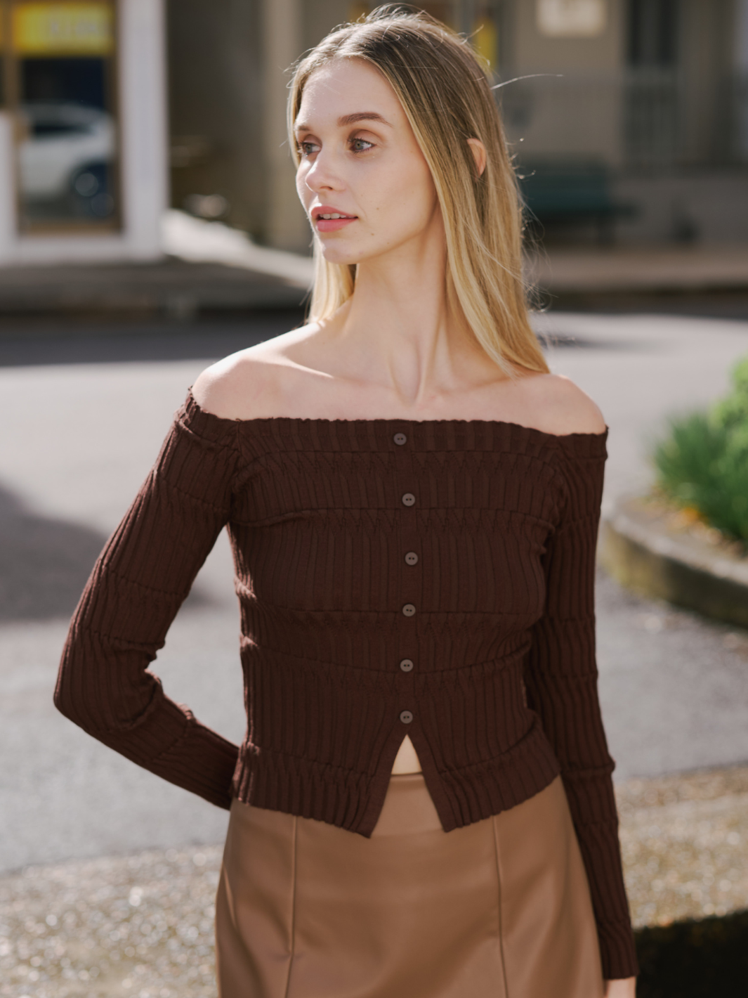 • Off the shoulder, long sleeve top